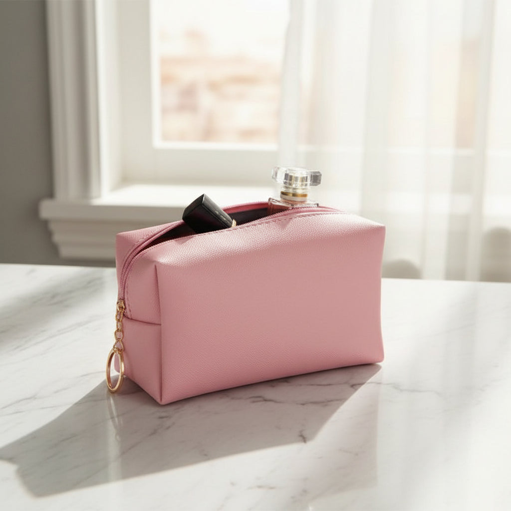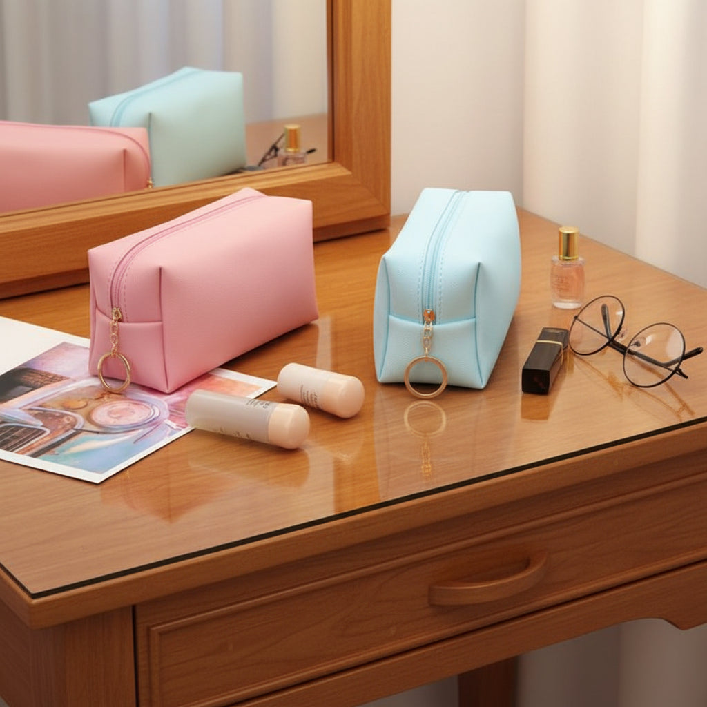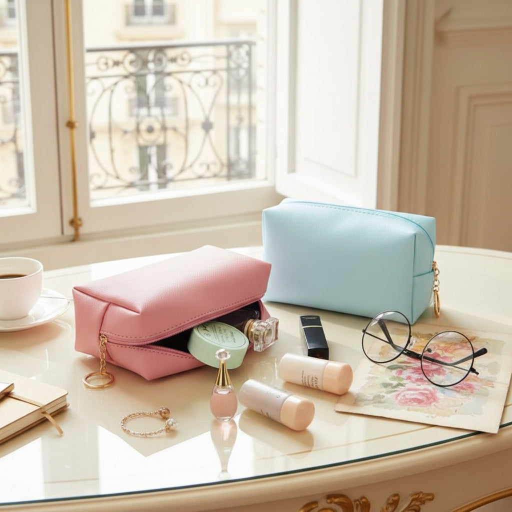 Avec un format compact adapté à vos besoins, la trousse combine espace et organisation. Chaque compartiment permet de ranger vos articles essentiels tels que des produits de toilette, maquillage ou accessoires d’hygiène quotidienne. Le matériau en PU assure une structure résistante et durable tout en étant léger pour un transport facile.