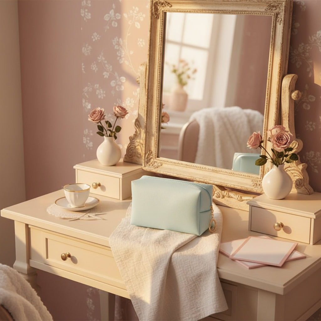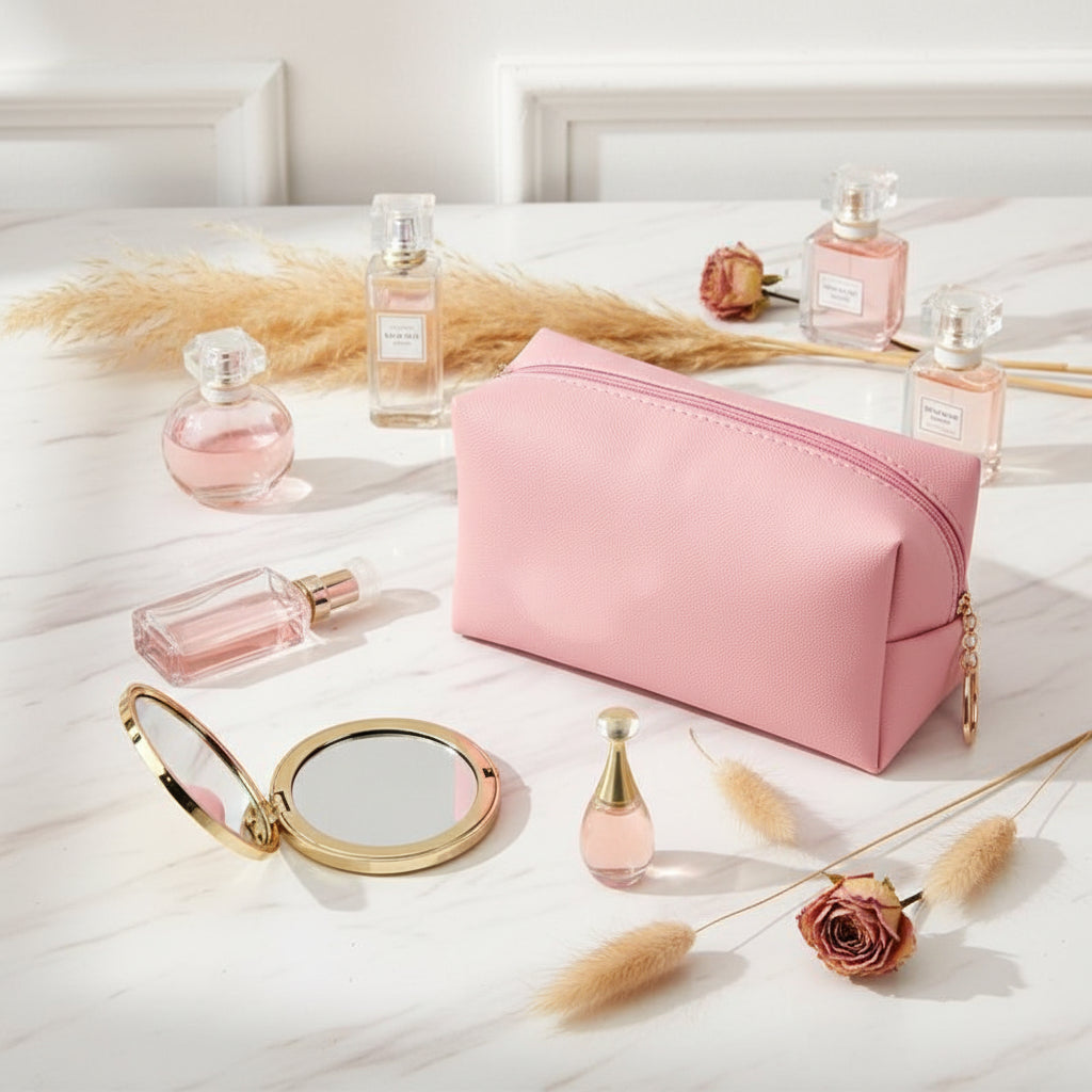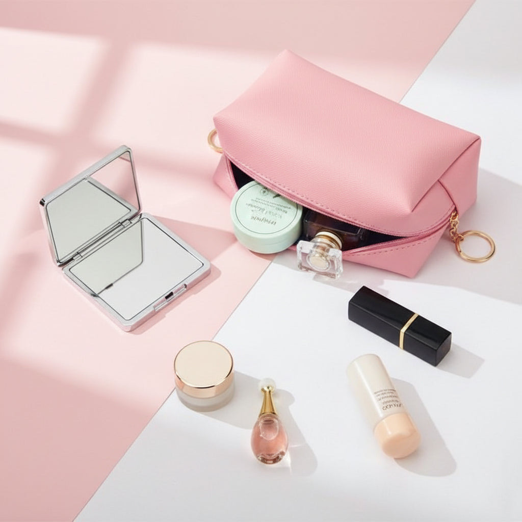 Avec un format compact adapté à vos besoins, la trousse combine espace et organisation. Chaque compartiment permet de ranger vos articles essentiels tels que des produits de toilette, maquillage ou accessoires d’hygiène quotidienne. Le matériau en PU assure une structure résistante et durable tout en étant léger pour un transport facile.