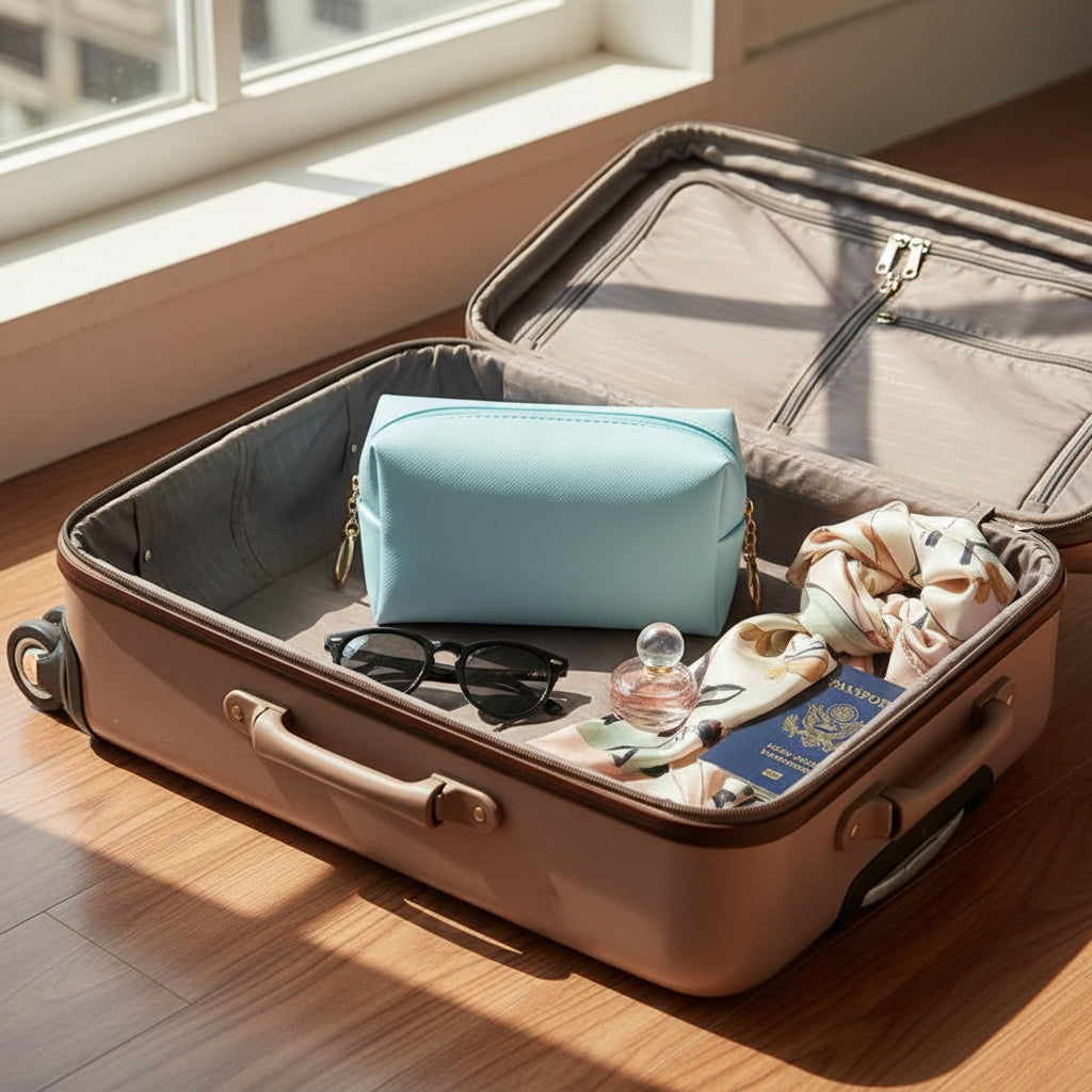 Parfaite pour accompagner vos déplacements, elle évite les désagréments liés au rangement de vos produits corporels. Ce modèle est idéal pour organiser vos affaires de manière efficace où que vous soyez. Découvrez également nos trousses de maquillage pour voyage, soigneusement conçues pour sublimer chaque escapade. Explorez plus d’articles en consultant notre page d'accueil.