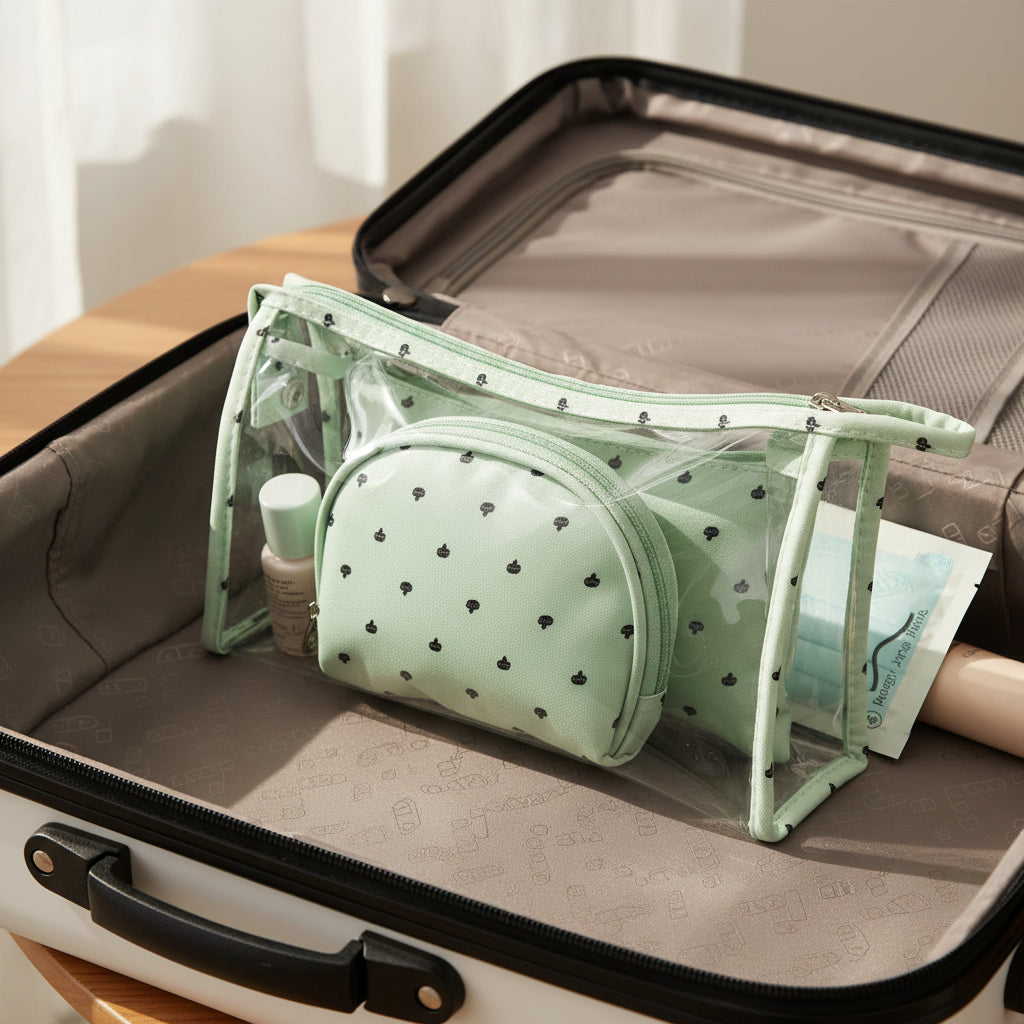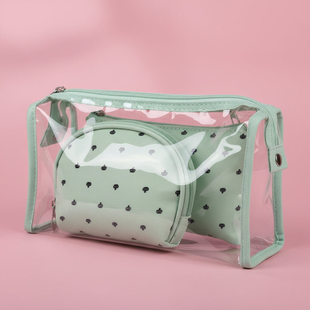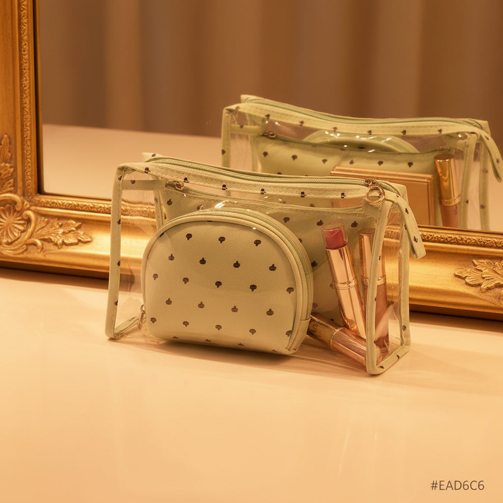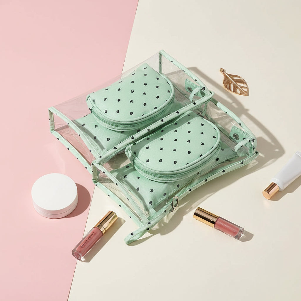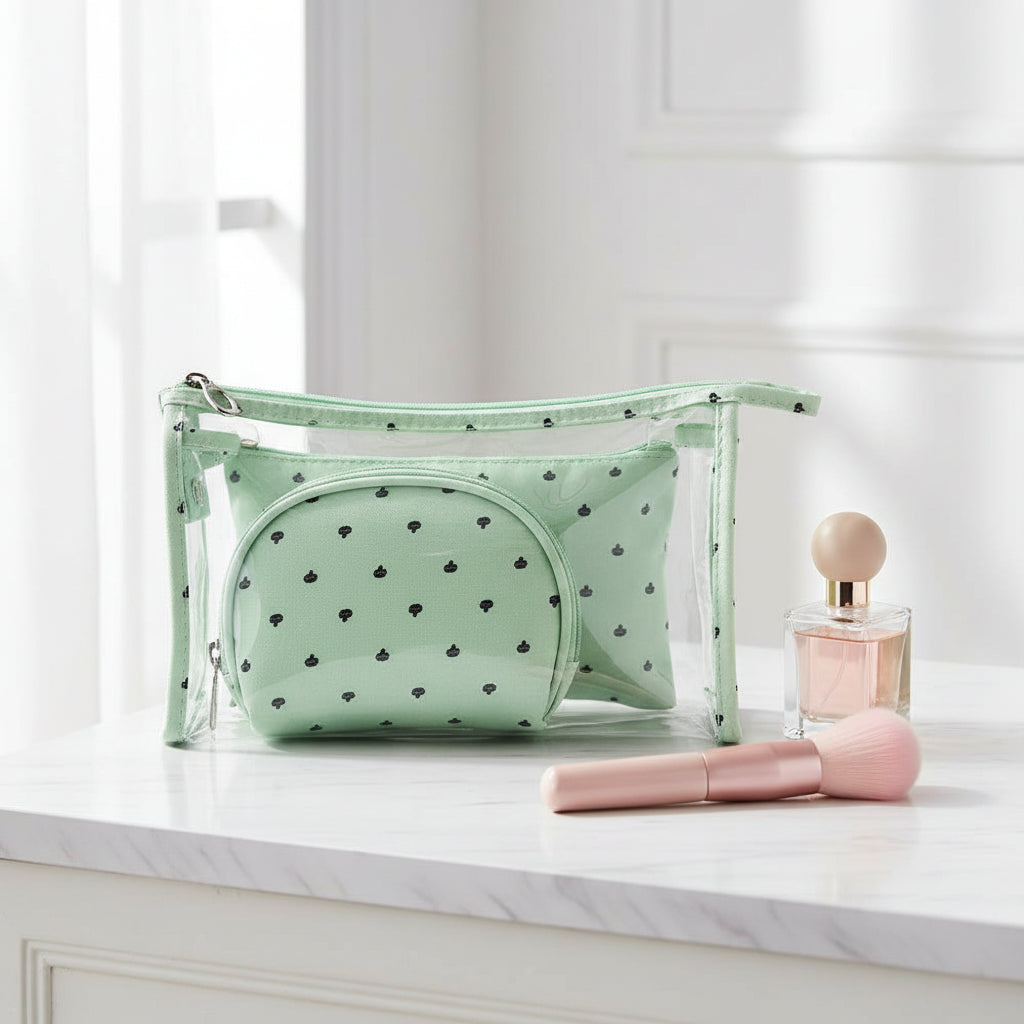 Le modèle à pois en PVC offre une solution fonctionnelle pour organiser votre maquillage. Grâce à son poids léger de 180g et ses petites pochettes incluses, il peut aisément être emporté partout, que vous soyez chez vous ou en déplacement. La couleur verte ajoute une touche unique, tandis que son matériau résistant garantit une utilisation prolongée.